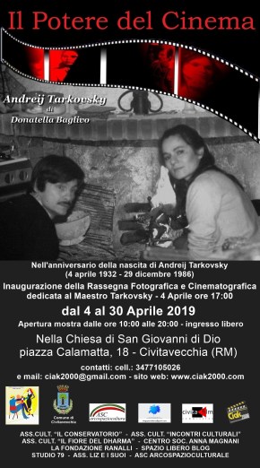 IL POTERE DEL CINEMA Dal patrimonio fotografico e cinematografico di Donatella Baglivo Mostra fotografica dedicata ad Andrey Tarkovsky e retrospettive cinematografiche Dal 4 al 30 Aprile 2019 – Chiesa di San Giovanni di Dio, Piazza Calamatta,… Continua a leggere