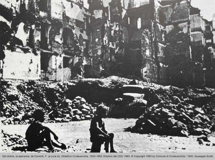 E qui voglio esprimere la mia idea, il mio pensiero di componente della Commissione di valutazione del Concorso, oltre a quanto ho già premesso fin qui, precisando anche il fatto di aver potuto e dovuto riflettere a lungo, per anni, sul tema del Concorso. E questo, sia perché ero già nato (avevo un anno, quattro mesi e otto giorni), quel 10 giugno del 1940, quando in Italia, a Roma, dal balcone di Palazzo Venezia in Piazza Venezia, fu dichiarata la guerra alle nazioni che così diventavano “nemiche” (portandosene dietro altre, per effetto di trattati ed accordi), sia perché mi sono occupato per motivi di studio dei bombardamenti di Civitavecchia e sia perché sono stato a lungo il responsabile comunale dell’ufficio addetto al territorio, all’urbanistica ed ai beni culturali e ambientale e quindi uno dei “custodi della Memoria” (obbligo di virgolette per mettere in evidenza che è come se ci fosse scritto prima «i cosiddetti»). Ragione per cui ho conservato nel mio ufficio, quale Centro di documentazione urbanistica (CDU, oggi si dice Urban center), gli album fotografici di Armando Blasi, poi consegnati integri all’Archivio Storico (dove sono stati sfregiati e semidistrutti da improvvide manomissioni), ho raccolto o elaborato moltissimo materiale documentario, ho poi pubblicato nel 1993 il volume Obiettivo Civitavecchia, 1943-1993 ed ho, ogni anno, per una quarantina di anni, curato qualche iniziativa e predisposto un manifesto in occasione della ricorrenza del 14 Maggio. Ho raccontato in un altro articolo del Blog (Senza parole, Tanto humour per nulla, pubblicato il 20 settembre 2020) che quel giorno 10 giugno ’40, del tutto inconsapevole di quanto accadeva esattamente a 4940 m di distanza, misurata sulla mappa di Google, mi trovavo anche io a Roma, come tutti quelli di piazza Venezia, ma ero nella casa dei miei genitori, in terra etrusca, oltre Ponte Milvio.