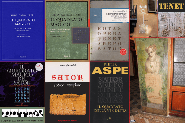 Riprendo il reportage nel vastissimo mondo dei cultori del Quadrato magico, ringraziando le amiche (e) lettrici che hanno voluto commentare la puntata precedente: Maria che, sul blog, ha espresso la sua curiosità per il seguito del racconto e Caterina che, sulla chat, ha gradito l’aver potuto – attraverso queste pagine – tornare a interrogarsi sul “busillis” rappresentato dall’enigmatica combinazione di quelle venticinque lettere. Alla fin fine, esse sono un vero e proprio “gioco di parole” e formano una frase dal significato, per restare in campo, piuttosto sibillino. Avendo promesso di impegnarmi a “rendere la puntata all’altezza delle aspettative”, confermo di essermi trovato in difficoltà per “l’infinità di atteggiamenti che vengono fuori da tutte le pubblicazioni”. Meravigliato, oltretutto, d’averne così tante in biblioteca. Anche, un paio, nella casa sabatina (nome doppiamente adatto), nascoste nell’armadio – giusto per aggiungere un tantino di mistero – di provenienza iblea e d’uso miscellaneo ed entomologico. Impossibile riassumerle tutte, forse anche inutile, vista la “stravaganza” di alcune tesi.