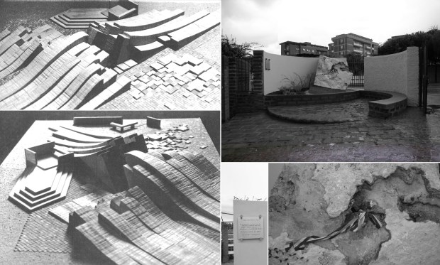 Quella mia idea del ’72 fu tradotta in disegni esecutivi e in un plastico di studio, con la collaborazione del collega architetto Paolo Taffi, nel ’74, anno in cui sottoposi il progetto alla Commissione edilizia, che diede il suo parere favorevole, e poi con un altro grande plastico per la ricerca di contributi nel ’77, per giungere alla posa della prima pietra il primo maggio del ’79. La realizzazione, in cui abbiamo usufruito della straordinaria esperienza di Guerriero Nenna, caro amico e geniale artista del cemento, si concluse in breve, ma per il completamento con il podio, le epigrafi commemorative e la sistemazione a verde dovemmo giungere al 21 maggio 1995. Ventitré anni, per concretizzare l’impegno appassionato di Pasquale Scognamiglio e il nostro modesto contributo. L’idea del monumento percorribile ha poi avuto esempi celebri nel mondo con il museo Yad Vashem di Gerusalemme, il Memoriale dell’Olocausto di Peter Eisenman a Berlino, inaugurato nel 2005, il Memoriale ai veterani della guerra del Vietnam, realizzato a Washington e ultimato nel 2007.
