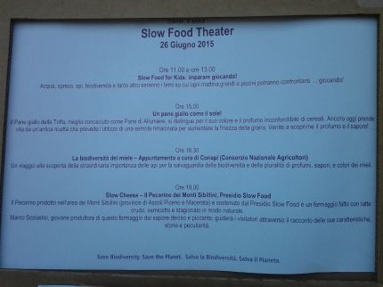 Il video è stato poi presentato presso lo “Slow Food Theater, lo spazio all’interno dell’area di Slow Food in cui” [si è potuto] “assistere a conferenze, dibattiti, presentazioni, ma anche proiezioni di film e selezioni musicali” [e] “incontrare la rete mondiale di Slow Food e Terra Madre e conoscere le storie di quanti già” […] “stanno nutrendo il pianeta ispirati dai princìpi del buono, pulito e giusto”.10