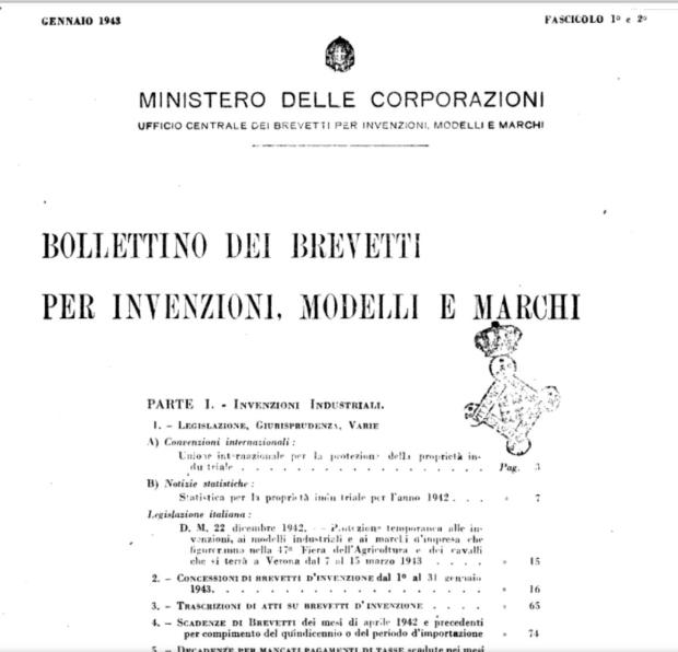 Nei Bollettini editi nel 1943, ottanta anni fa, dall’Ufficio centrale dei brevetti per invenzioni, modelli e marchi del Ministero delle Corporazioni abbiamo scovato tre suoi brevetti registrati (uno in comune con Antonio Bovo):