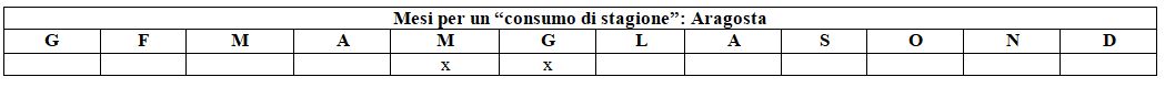 Note. Specie selvatica; è anche allevata. La pesca è vietata dal 01/01 al 30/04. Può essere confusa con l’Aragosta Palinurus mauritanicus (Codice FAO Alpha-3 PSL) di provenienza atlantica con una taglia media (fino a 50 cm circa).