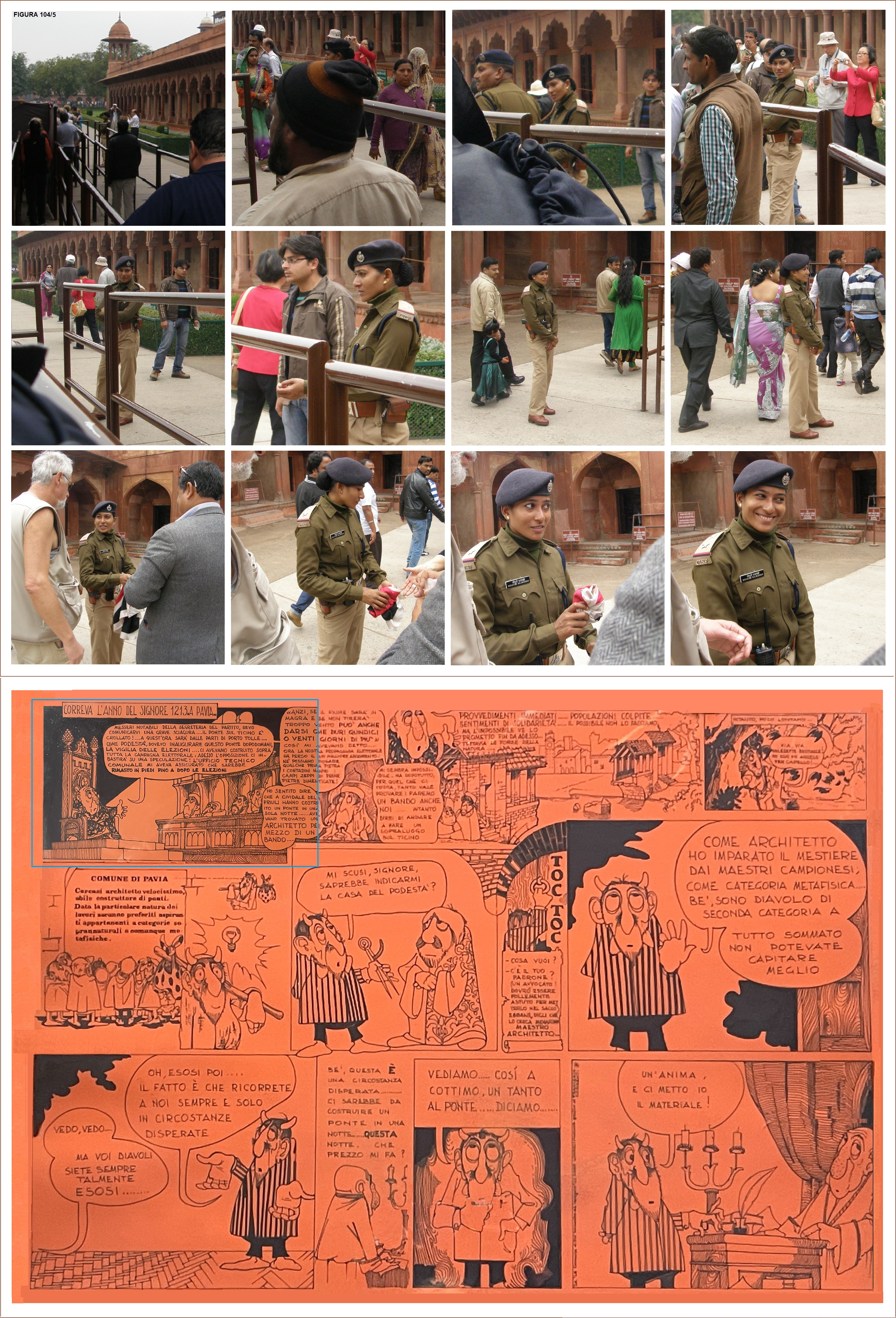 E qui due parole sulla copertina, prima dei saluti. L’immagine multicolore riproduce un tessuto tipico della regione indiana dove sono state realizzate le abitazioni dalle forme simili a quelle del mio “giovanile” progetto siciliano del 1965, di cui ho posto due vedute sotto il titolo. A rappresentare visivamente l’India, un primo piano dell’agente di polizia Mousumi Rajbanshi, alla quale dedico, scusandomene, la figura 104/5: sotto il suo sguardo vigile e simpaticamente espressivo abbiamo iniziato e terminato la nostra visita al meraviglioso Taj Mahal. Che mi è rimasto vivido nel ricordo.